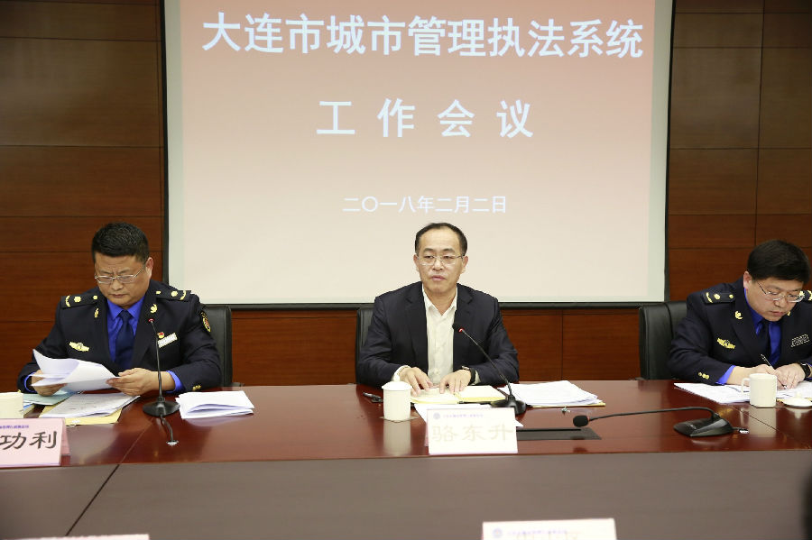 会上,谭军局长作了《大连市城管执法系统2017年工作总结暨2018年工作安排的报告》。